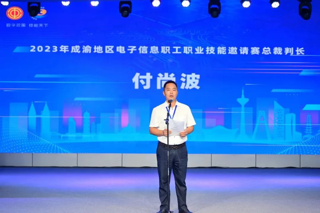 为深入学习党的二十大精神,贯彻落实成渝地区双城经济圈重大战略部署,强化产业工人队伍建设改革,聚焦双城职工技能交流和提升,充分发挥技能大赛“以赛为媒、以赛促学、以赛促训、以赛促建”的作用,9月21日,由四川省总工会、重庆市总工会、中国国防邮电工会指导,成都市总工会主办的“2023年成渝地区电子信息职工职业技能邀请赛”在成都市劳动人民文化宫圆满落幕, “成都市付尚波劳模和工匠人才创新工作室”领办人付尚波出席比赛现场,并受邀担任本次大赛的总裁判长,全程为大赛保驾护航。