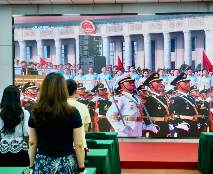 随着庄严的国歌声响起,员工自发肃立,共同感受这一神圣而伟大的时刻。庄严的仪式、铿锵的话语、历史的回顾以及对和平的展望,深深感染着在场的每一位精沛人。员工们全神贯注,认真聆听,深刻感悟那段烽火连天的峥嵘岁月,体会中华民族不屈不挠、英勇抗争的伟大精神,共同见证国家铭记历史、捍卫和平、迈向复兴的坚定决心。
