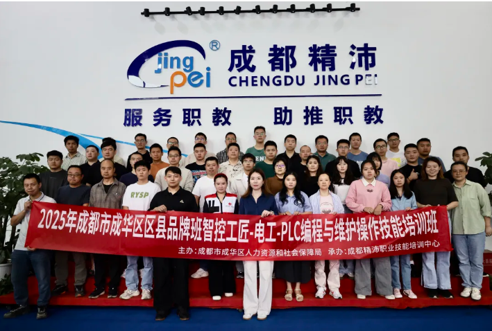 成都精沛科技有限公司 2025-11-04为进一步落实《成都市人力资源和社会保障局关于企业职工项目制培训“区县品牌班”培训工作的通知》精神,我单位承办的成都市成华区区县品牌班“智控工匠”电工-PLC编程与维护操作技能培训班于2025年9月27日正式开班!