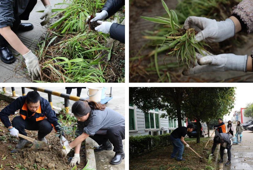 活动一开始,松土组的同事们便拿起锄头、铁锹,投入到清理场地的工作中。他们仔细移除石块、杂草。随后,大家轮流挖掘松土,确保每个树坑的深度和直径都符合树苗的生长需求。尽管汗水浸湿了衣背,但大家干劲十足,为后续种植打下了坚实基础。