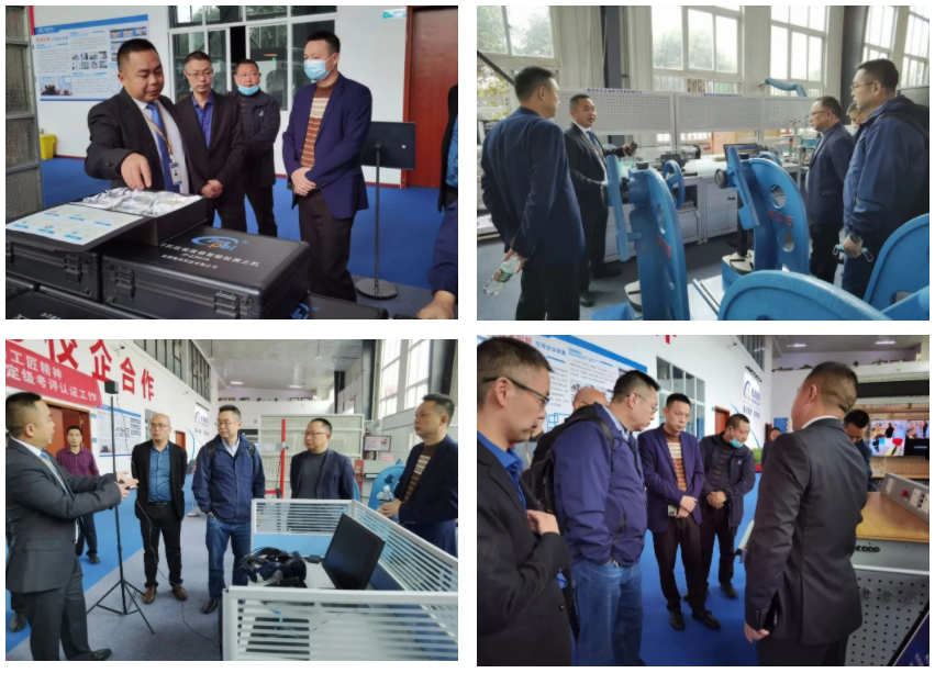 抵达成都精沛后,考察团首先对精沛的发展情况、产教融合成果、大师工作室、企业工作生产区域进行参观调研。通过董事长付尚波的介绍以及观看精沛宣传片,深入了解精沛发展历程与文化内涵。