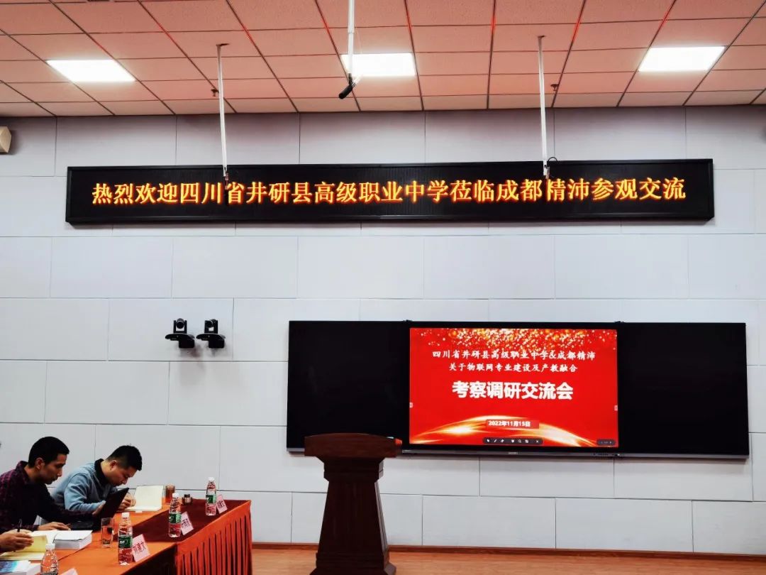 11月15日,四川省井研县教育局成职教股股长胡柄轩、四川省井研县高级职业中学校长罗志强、成都物联网产业发展联盟秘书长李俊华等来自政府、学校和行业的领导到访成都精沛,就产教融合及物联网专业建设等事宜进行调研交流。成都精沛董事长付尚波、总经理苏鹏权等公司领导对考察团进行了热情接待。