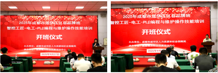 成都精沛科技有限公司 2025-11-04为进一步落实《成都市人力资源和社会保障局关于企业职工项目制培训“区县品牌班”培训工作的通知》精神,我单位承办的成都市成华区区县品牌班“智控工匠”电工-PLC编程与维护操作技能培训班于2025年9月27日正式开班!
