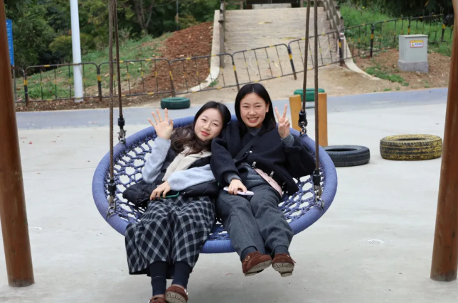 公园一隅的秋千架,成了大家邂逅童趣的小天地。她们轻坐其上,随风飞扬。一摇一荡,都是与春天最温柔的对话。